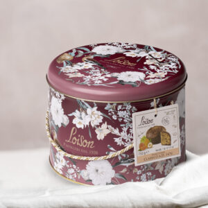 Este Panettone artesanal de la colección Frutta e Fiori (frutas y flores-la gama alta de Loison) tiene una masa especialmente suave, de color amarillo y bien alveolar. La levadura natural, a partir de una masa madre y las 72 horas de paciente elaboración artesanal confieren al Panettone una gran suavidad y digestibilidad. Esta empaquetados a mano y el diseño esta inspirados en las tablas botánicas de finales del siglo XVIII.